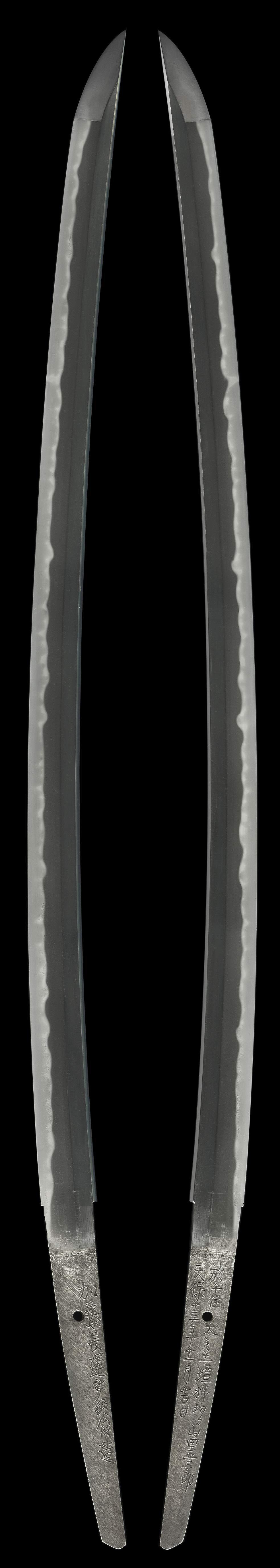 長運斉綱俊は、米沢の藩工加藤勘四郎国秀の子であり寛政九年生れ、号を長運斉と称す。江戸麻布飯倉片町の上杉家屋敷にて鍛刀する。水心子正秀の門人であり、弟子には固山宗次・高橋長信・石堂運寿是一など幕末の名工が名を連ねる。固山宗次の師は綱俊の兄である綱秀(綱英)との説もあるが、実際には弟である綱俊に多大な影響を受けたと思われる。それは宗次が備前伝の丁字刃を得意とした事に比して、綱秀(綱英)には濤乱刃が多く丁字刃はほとんど見られず、綱俊には丁字刃が多い事から推測が出来る。この作品は山田浅衛門家山田五三郎による截断銘が入る。綱俊と宗次が、備前伝の名手として天保年間にその名が巷間に注目されていた事は、彼らの技量が優れていた事は当然としながらも、それ以上に彼らの刀の斬味について指導した伊賀乗重や山田浅衛門家と極めて懇意な関係を保持した事に大きく起因する。このことは綱俊が師である水心子正秀の、美術面ではなく武用面を第一義とした武用論に影響をうけたものであろう。水心子正秀は晩年その自説をまもり派手な刀を作らなかったが、綱俊は師正秀の武用面を、伊賀乗重や山田浅衛門家とのつながりにより忠実にまもり、それでいて備前伝の美術面も高く表現してみせた。このことが長運斉綱俊と固山宗次が、江戸新々刀期刀工としては抜きんてている所以であろう。