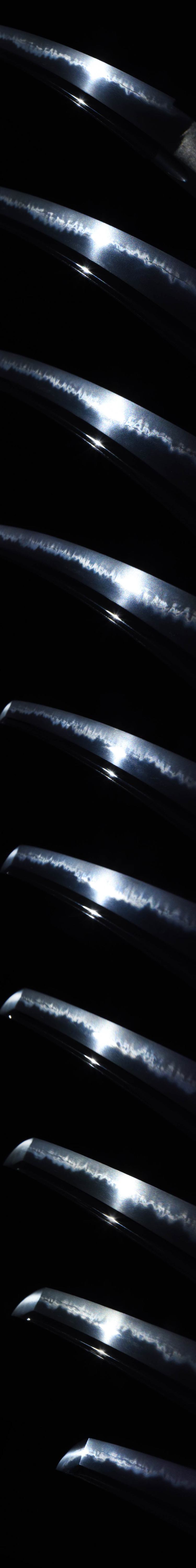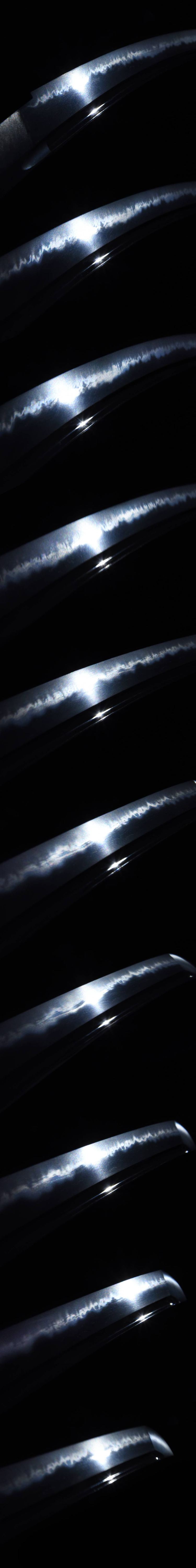 この刀は互の目乱れに様々な刃が交じり、長い金筋と幾重にも重なる砂流しがかかり、沸よくつき所々荒沸となり、清麿を彷彿とさせる清麿写しであり、彼の個性を余すところなく示しており、殊に、刃取は様々な刃を交えて変化がみられ、匂口が明るく冴え渡っている点が特筆される。同工の卓越した技量が存分に表示された優品である。