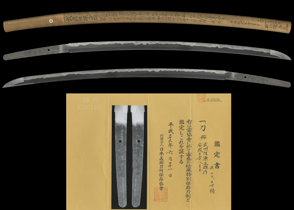 刀・太刀 短刀・脇指 刀装具・拵・鐔・小柄・笄 古式銃 HOME | 刀、太刀 源清麿『源正行 弘化二年八月日』源清麿『山浦環清麿 歳在乙酉 探山(花押)』『平信秀 元治元年三月日』『武州住源正雄作 安政三年八月日』 特別保存刀剣『武州住源正雄作 安政三年八月日』 Bushu ju Minamoto no MASAO saku 特別保存刀剣『平信秀 元治元年三月日』 Taira NOBUHIDE 保存刀剣『島田義助』 Shimada YOSHISUKE 重要刀剣源清麿『源正行 弘化二年八月日』 KIYOMARO(Minamoto MASAYUKI Koka3nen 8gatsuhi) 保存刀剣源清麿『山浦環清麿 歳在乙酉 探山(花押)』 Yamaura Tamaki KIYOMARO Kinototori TANZAN(Kao) 特別保存刀剣『長船 長光』 Osafune NAGAMITSU 特別保存刀剣『青江 長次』 Aoe NAGATSUGU 特別保存刀剣『信濃国寿昌 天保十五年二月日』(山浦真雄) Shinano koku TOSHIMASA (Yamaura SANEO) 特別保存刀剣『栗原筑前守信秀 慶應三年八月日』 Kurihara chikuzen no kami NOBUHIDE 重要刀剣 『吉宗(福岡一文字)』 YOSHIMUNE (Fukuoka Ichimonji) 特別保存刀剣『備前介藤原宗次 明治元年九月日』 Bizen no suke fujiwara MUNETSUGU 特別重要刀剣『来国行』 RAI KUNIYUKI 特別保存刀剣『相模國冬廣』 FUYUHIRO 特別保存刀剣『作陽幕下士細川正義造(刻印)天保十五甲辰年仲秋』黒呂色塗狛犬蒔絵鞘打刀拵 素銅牡丹獅子色絵赤銅魚子縁頭 赤銅磨地献上鐔 sakuyou bakkashi HOSOKAWA MASAYOSHI tempo15nen kinoetatsu nen cyuushu 保存刀剣『筑州住宗勉 平成十四年二月吉日 備前国友成写』 Chikusyu SOUTSUTOMU /Bizen TOMONARI 重要刀剣 『兼長(備前)』 KANENAGA(Bizen) 特別保存刀剣『加藤長運斉綱俊造 於千住太々土壇拂 切手山田五三郎 天保十三年十一月吉日』 Katou chounsai TUNATOSHI tukuru 重要刀剣 『丹波守吉道(京初代)』 Tanba no kami YOSHIMICHI (Kyoto first generation) 重要刀剣『政光』 MASAMITSU(Bizen) 特別保存刀剣『備前家守(長船家守)』 IEMORI(bizen osafune) 保存刀剣『宮入清平造 昭和五十一年二月吉日(清宗)』清麿写 MIYAIRI KIYOHIRA showa51nen 2gatu kichizitsu(A copy of KIYOMARO) 重要刀剣『行秀(古備前)』 YUKIHIDE kobizen 特別保存刀剣『肥前一文字出羽守行廣(初代)阿蘭陀鍛』 Hizen Ichimonji Dewa no kami YUKIHIRO . Orandakitae 重要刀剣 『助包(古備前)』 SUKEKANE (Kobizen) ご注文・お問い合わせ 日本刀は実際にご覧いただいてからのご購入を強くおすすめしております。 (営業時間 年中無休 12:00-19:00、年末年始除く) 仕入れ、買い出し、営業の為に、月の半分は出張の為外出しております。 留守番電話になっておりますので、お名前・ご連絡先・ご用件をお入れください。 メールでのお問い合わせ・ご注文は、こちらからお進みください。 (メールが自動的に立ち上がらない場合は、直接アドレスをご入力ください。 株式会社タイセイ堂 トップぺージ ショップ紹介 刀・太刀 短刀・脇指 刀装具・拵・鐔・小柄・笄 古式銃 お支払い方法・お届け方法 日本刀の所持について ご注文・お問い合わせ ご利用規約 プライバシーポリシー 特定商取引法に基づく表示 内閣総理大臣認可 全国刀剣商業共同組合 美術品商 神奈川県公安委員会許可 第452520016851号 お電話でのお問合わせ 044-271-8158 営業時間平日12:00-19:00 年中無休ですが、仕入れや買取の為、月の半分は出張の為お電話に出られません。 留守番電話にメッセージを残して頂くかメールを頂けましたら、折り返しご連絡差し上げます。