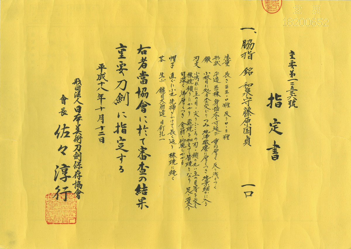 重要刀剣『和泉守藤原国貞』