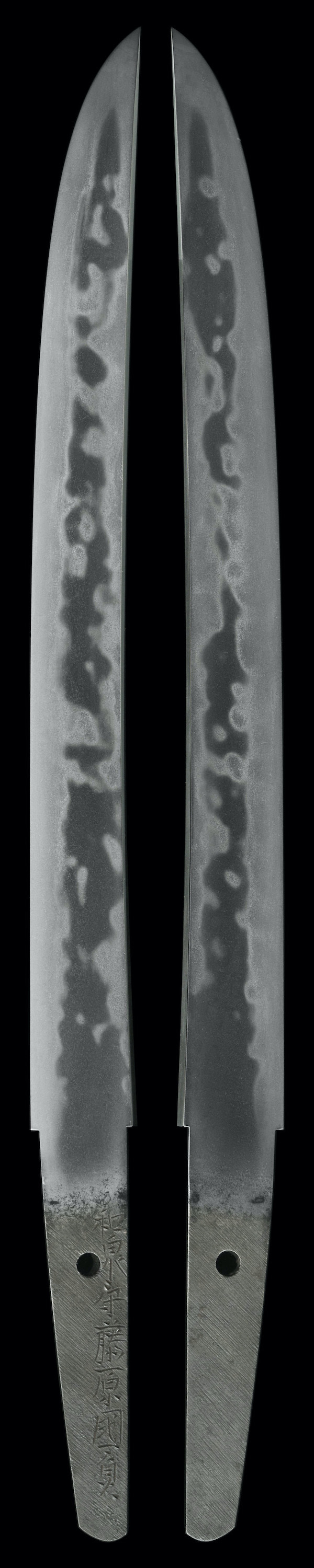 『茎』生ぶ、先刃上がりの栗尻、鑢目大筋違、目釘孔一、指表棟寄りに長銘あり。