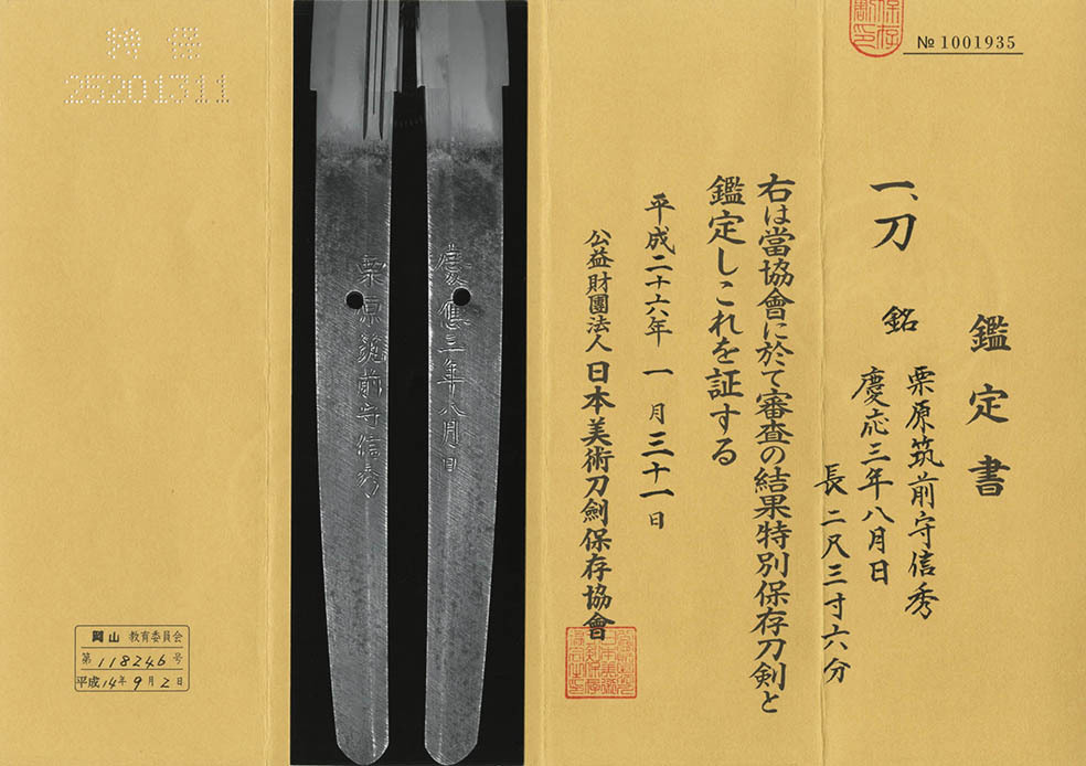 特別保存刀剣『栗原筑前守信秀 慶應三年八月日』